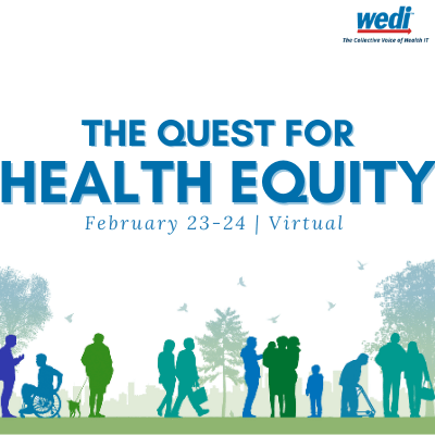 WEDI, the preeminent national membership association for health IT guidance and collaboration invites healthcare professional to our first educational event of 2021, “The Quest for Health Equity”, February 23-24, 2021 on Zoom. This event will investigate and showcase the significance data interoperability has to eliminate healthcare disparities in the country.